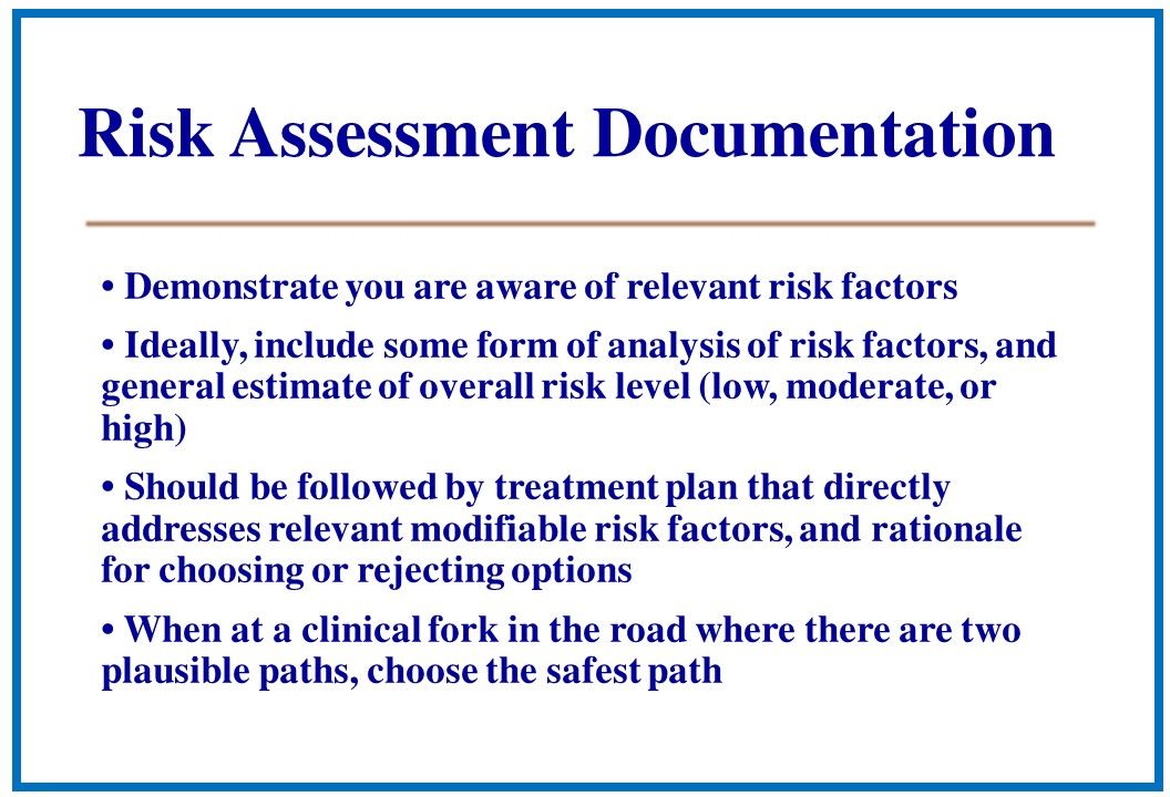 This slideshow assumes an understanding of simple documentation principles, such as the need for clarity, legibility, timeliness and accuracy. The presentation will address the clinical and legal reasons for maintaining acceptable documentation.2 Important documentation principles and manner will be presented which may also serve to reduce liability risks.
